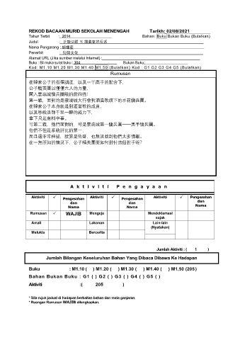 REKOD BACAAN MURID SEKOLAH MENENGAH Tarikh: 02/08/2021