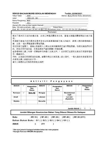 REKOD BACAAN MURID SEKOLAH MENENGAH Tarikh: 02/08/2021