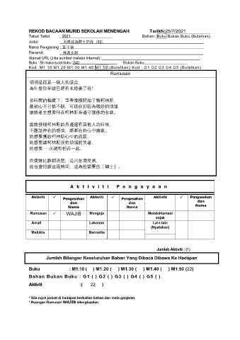 REKOD BACAAN MURID SEKOLAH MENENGAH Tarikh:25/7/2021