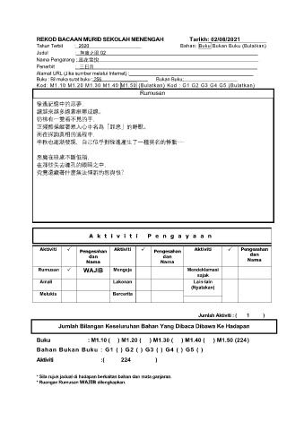 REKOD BACAAN MURID SEKOLAH MENENGAH Tarikh: 02/08/2021