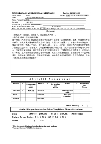 REKOD BACAAN MURID SEKOLAH MENENGAH Tarikh: 02/08/2021