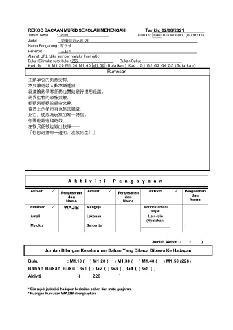 REKOD BACAAN MURID SEKOLAH MENENGAH Tarikh: 02/08/2021