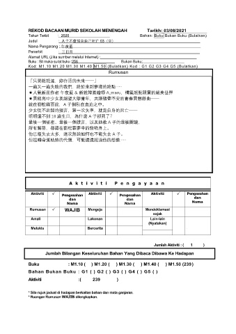 REKOD BACAAN MURID SEKOLAH MENENGAH Tarikh: 03/08/2021