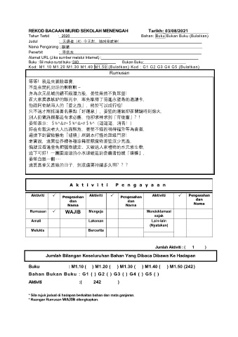 REKOD BACAAN MURID SEKOLAH MENENGAH Tarikh: 03/08/2021