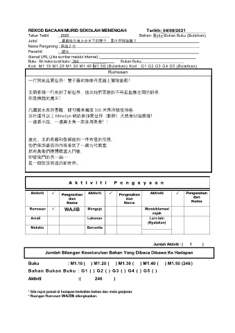 REKOD BACAAN MURID SEKOLAH MENENGAH Tarikh: 04/08/2021