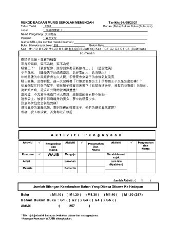 REKOD BACAAN MURID SEKOLAH MENENGAH Tarikh: 04/08/2021