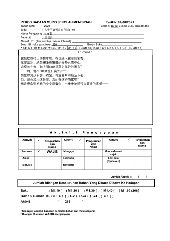 REKOD BACAAN MURID SEKOLAH MENENGAH Tarikh: 04/08/2021