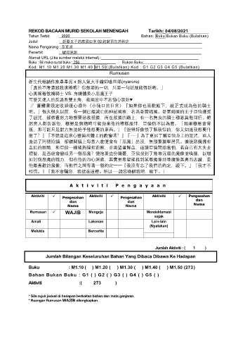 REKOD BACAAN MURID SEKOLAH MENENGAH Tarikh: 04/08/2021