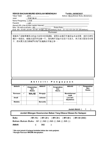 REKOD BACAAN MURID SEKOLAH MENENGAH Tarikh: 04/08/2021