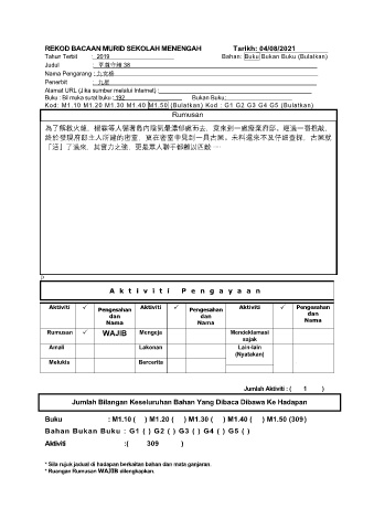 REKOD BACAAN MURID SEKOLAH MENENGAH Tarikh: 04/08/2021