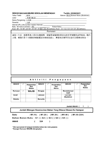 REKOD BACAAN MURID SEKOLAH MENENGAH Tarikh: 05/08/2021