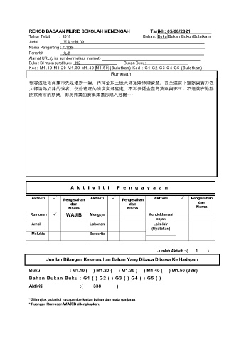 REKOD BACAAN MURID SEKOLAH MENENGAH Tarikh: 05/08/2021