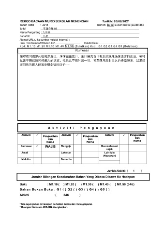 REKOD BACAAN MURID SEKOLAH MENENGAH Tarikh: 05/08/2021