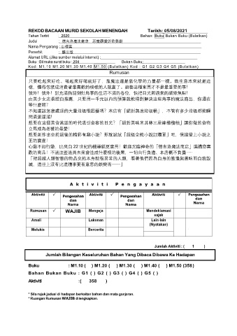REKOD BACAAN MURID SEKOLAH MENENGAH Tarikh: 05/08/2021