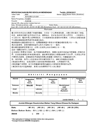 REKOD BACAAN MURID SEKOLAH MENENGAH Tarikh: 05/08/2021