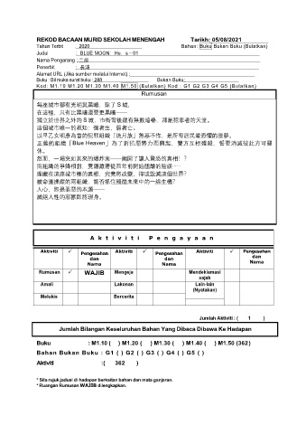 REKOD BACAAN MURID SEKOLAH MENENGAH Tarikh: 05/08/2021