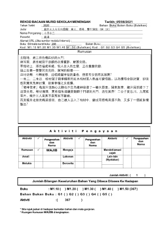 REKOD BACAAN MURID SEKOLAH MENENGAH Tarikh: 05/08/2021