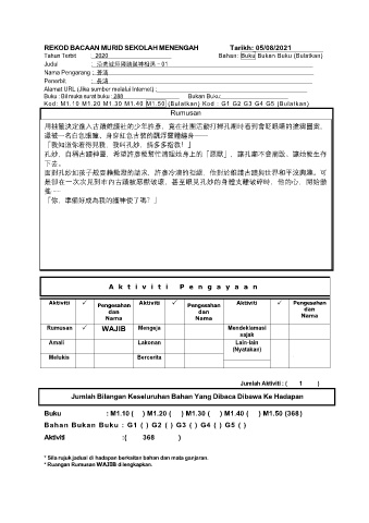 REKOD BACAAN MURID SEKOLAH MENENGAH Tarikh: 05/08/2021