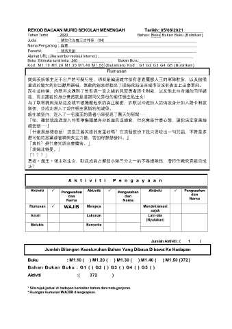 REKOD BACAAN MURID SEKOLAH MENENGAH Tarikh: 05/08/2021
