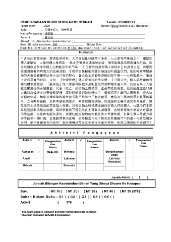 REKOD BACAAN MURID SEKOLAH MENENGAH Tarikh: 05/08/2021