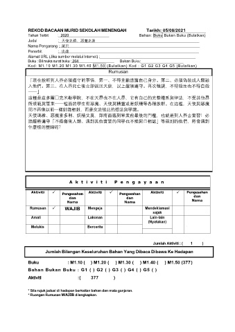 REKOD BACAAN MURID SEKOLAH MENENGAH Tarikh: 05/08/2021