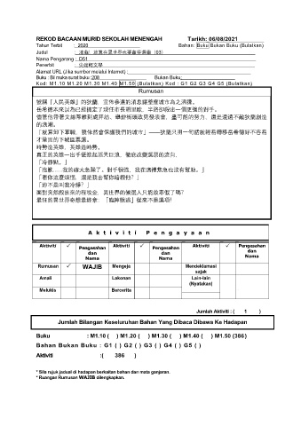 REKOD BACAAN MURID SEKOLAH MENENGAH Tarikh: 06/08/2021