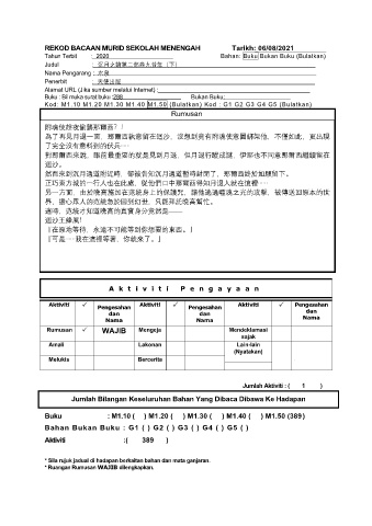 REKOD BACAAN MURID SEKOLAH MENENGAH Tarikh: 06/08/2021