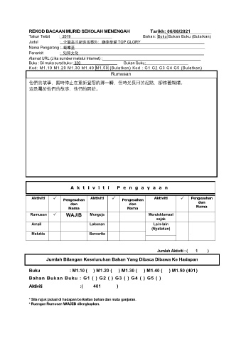 REKOD BACAAN MURID SEKOLAH MENENGAH Tarikh: 06/08/2021