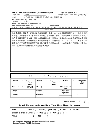 REKOD BACAAN MURID SEKOLAH MENENGAH Tarikh: 06/08/2021