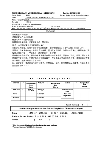 REKOD BACAAN MURID SEKOLAH MENENGAH Tarikh: 06/08/2021