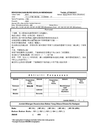 REKOD BACAAN MURID SEKOLAH MENENGAH Tarikh: 07/08/2021