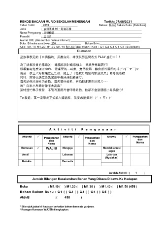 REKOD BACAAN MURID SEKOLAH MENENGAH Tarikh: 07/08/2021