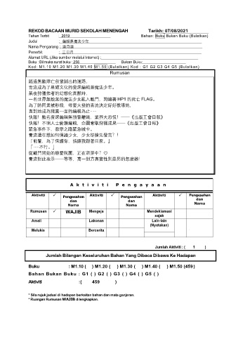 REKOD BACAAN MURID SEKOLAH MENENGAH Tarikh: 07/08/2021