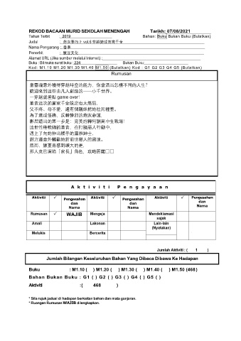 REKOD BACAAN MURID SEKOLAH MENENGAH Tarikh: 07/08/2021