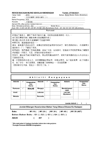 REKOD BACAAN MURID SEKOLAH MENENGAH Tarikh: 07/08/2021