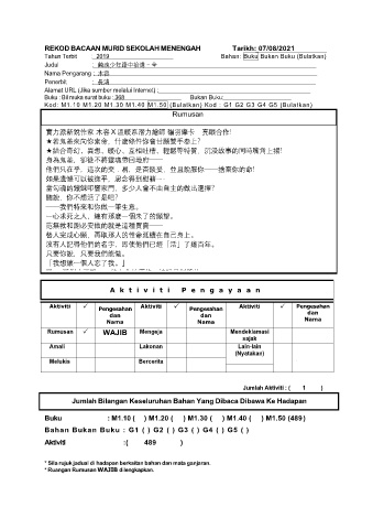 REKOD BACAAN MURID SEKOLAH MENENGAH Tarikh: 07/08/2021
