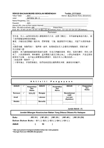 REKOD BACAAN MURID SEKOLAH MENENGAH Tarikh: 27/7/2021