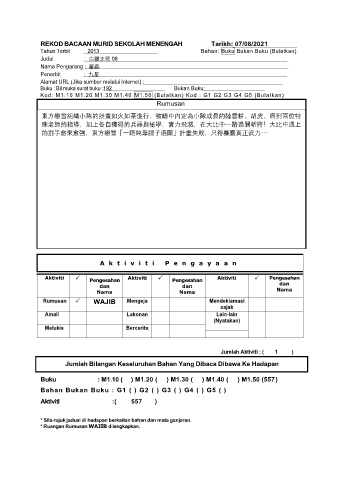 REKOD BACAAN MURID SEKOLAH MENENGAH Tarikh: 07/08/2021
