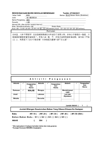 REKOD BACAAN MURID SEKOLAH MENENGAH Tarikh: 07/08/2021