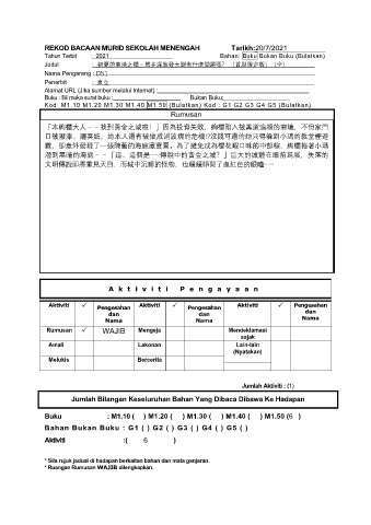 REKOD BACAAN MURID SEKOLAH MENENGAH Tarikh:20/7/2021