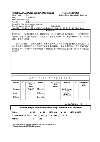 REKOD BACAAN MURID SEKOLAH MENENGAH Tarikh: 07/08/2021