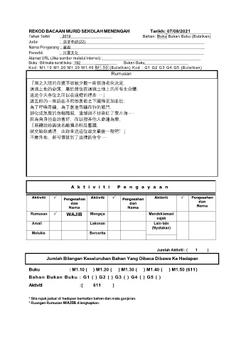 REKOD BACAAN MURID SEKOLAH MENENGAH Tarikh: 07/08/2021