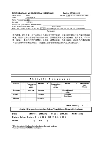 REKOD BACAAN MURID SEKOLAH MENENGAH Tarikh: 07/08/2021