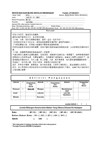 REKOD BACAAN MURID SEKOLAH MENENGAH Tarikh: 07/08/2021