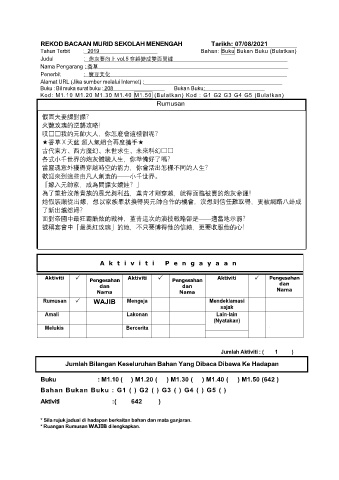 REKOD BACAAN MURID SEKOLAH MENENGAH Tarikh: 07/08/2021