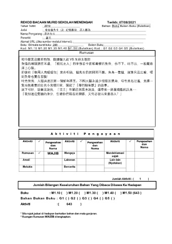 REKOD BACAAN MURID SEKOLAH MENENGAH Tarikh: 07/08/2021