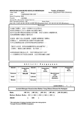 REKOD BACAAN MURID SEKOLAH MENENGAH Tarikh: 07/08/2021