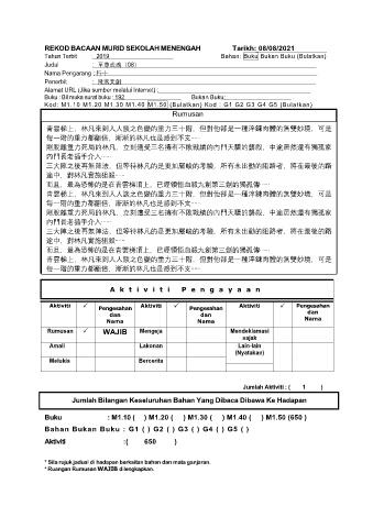 REKOD BACAAN MURID SEKOLAH MENENGAH Tarikh: 08/08/2021