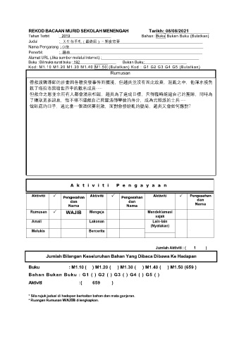 REKOD BACAAN MURID SEKOLAH MENENGAH Tarikh: 08/08/2021