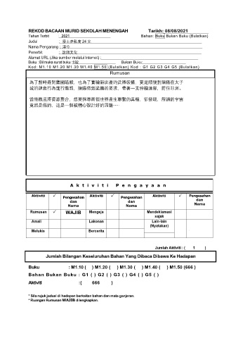 REKOD BACAAN MURID SEKOLAH MENENGAH Tarikh: 08/08/2021